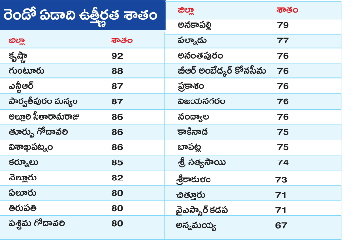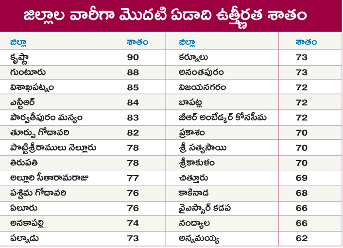 ఉత్తీర్ణతలో తొలి మూడు స్థానాల్లో కృష్ణా, గుంటూరు, విశాఖ జిల్లాలు