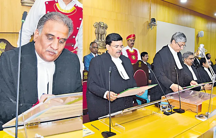 ఆ తర్వాత సీజే వారికి విడి విడిగా రాష్ట్రపతి జారీ చేసిన ఉత్తర్వులను అందజేశారు. ఈ కార్యక్రమంలో హైకోర్టు న్యాయమూర్తులు, ప్రమాణం చేసిన న్యాయమూర్తుల కుటుంబ సభ్యులు, అడ్వొకేట్ జనరల్ (ఏజీ) దమ్మాలపాటి శ్రీనివాస్, అదనపు ఏజీ ఇవన సాంబశివ ప్రతాప్, డిప్యూటీ సొలిసిటర్ జనరల్ (డీఎస్జీ) పసల పొన్నారావు, పబ్లిక్ ప్రాసిక్యూటర్ మెండ లక్ష్మీనారాయణ, హైకోర్టు న్యాయవాదుల సంఘం అధ్యక్షుడు కలిగినీడి చిదంబరం, హైకోర్టు రిజి్రస్టార్లు, న్యాయవావాదులు, సిబ్బంది పాల్గొన్నారు.