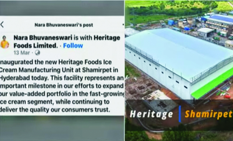 తెలంగాణలో హెరిటేజ్ సంస్థ కొత్త ప్లాంట్ను ఏర్పాటు చేసింది. శామీర్పేటలో 6,205 చదరపు మీటర్ల విస్తీర్ణంలో, 98.5 మీటర్ల పొడవు, 63 మీటర్ల వెడల్పుతో హెరిటేజ్ ఐస్క్రీమ్ ప్లాంట్ను ప్రారంభించింది. ఈ ప్లాంట్లో చంద్రబాబు కుటుంబం రూ.204 కోట్ల పెట్టుబడి పెట్టింది. వచ్చే ఐదేళ్లలో ఈ పెట్టుబడులను రూ.500 నుంచి రూ.700 కోట్ల వరకు పెంచాలని నిర్ణయించింది.