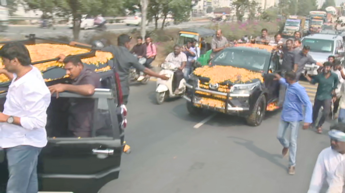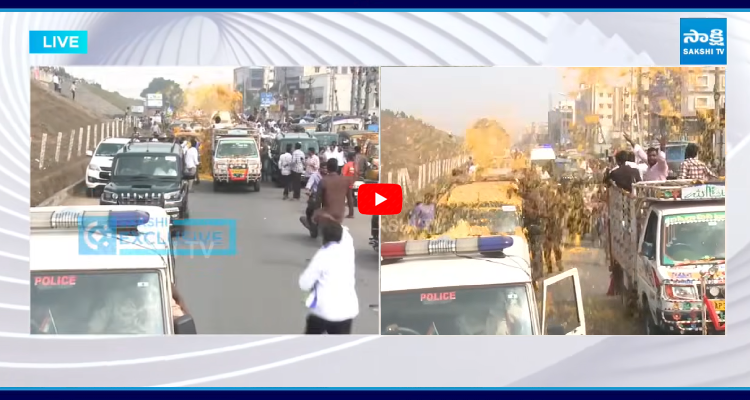 వైఎస్ జగన్ వెళ్తున్న సమయంలో భారీగా వైఎస్సార్సీపీ కార్యకర్తలు, అభిమానులు భారీగా సంఖ్యలో తరలివచ్చారు. జగన్ కాన్వాయ్ వెంట వారంతా ముందుకు సాగుతున్నారు. వైఎస్సార్సీపీ శ్రేణులు వైఎస్ జగన్కు ఘన స్వాగతం పలుకుతూ పూల వర్షం కురిపించారు. ఆయన కారుపై పూలు చల్లుతూ తమ అభిమానం చాటుకున్నారు. భారీ సంఖ్యలో అభిమానులు తరలి రావడంతో వైఎస్ జగన్ క్వానాయ్ నెమ్మెదిగా ముందుకు కదులుతోంది.