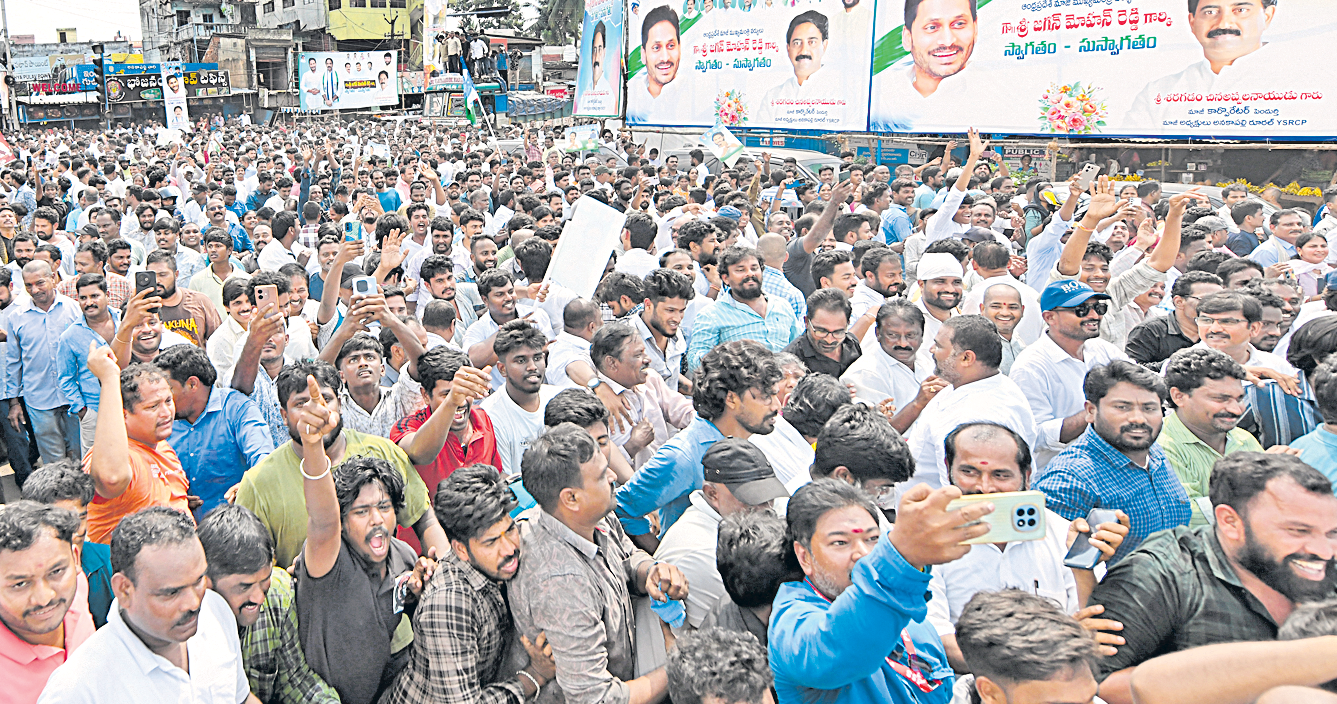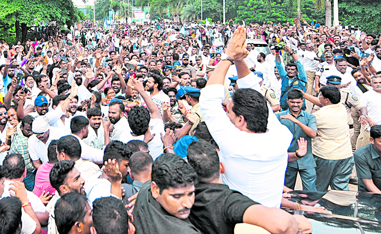 ఉత్తరాంధ్రలో వైఎస్సార్ సీపీ అధ్యక్షుడు, మాజీ సీఎం వైఎస్ జగన్మోహన్రెడ్డి పర్యటనను అడ్డుకునేందుకు కూటమి సర్కారు ఎన్ని ఆంక్షలు పెట్టినా జన సునామీ ఎదుట తల వంచక తప్పలేదు! జోరు వర్షంతో పాటు ప్రజల అభిమానంతో తడిసి ముద్ద కావడంతో 65 కిలోమీటర్ల రోడ్డు ప్రయాణాన్ని వైఎస్ జగన్ ఏకంగా 6 గంటల పాటు ఎడతెరపి లేకుండా సాగించాల్సి వచ్చింది. వాహనాలను పోలీసులు అడ్డుకున్నా ప్రజలు పెద్ద ఎత్తున ఆయన వెంట తరలి వచ్చారు. ఇటీవలి కాలంలో అతి పెద్ద రాజకీయ సభగా పరిశీలకులు దీన్ని అభివర్ణిస్తున్నారు.