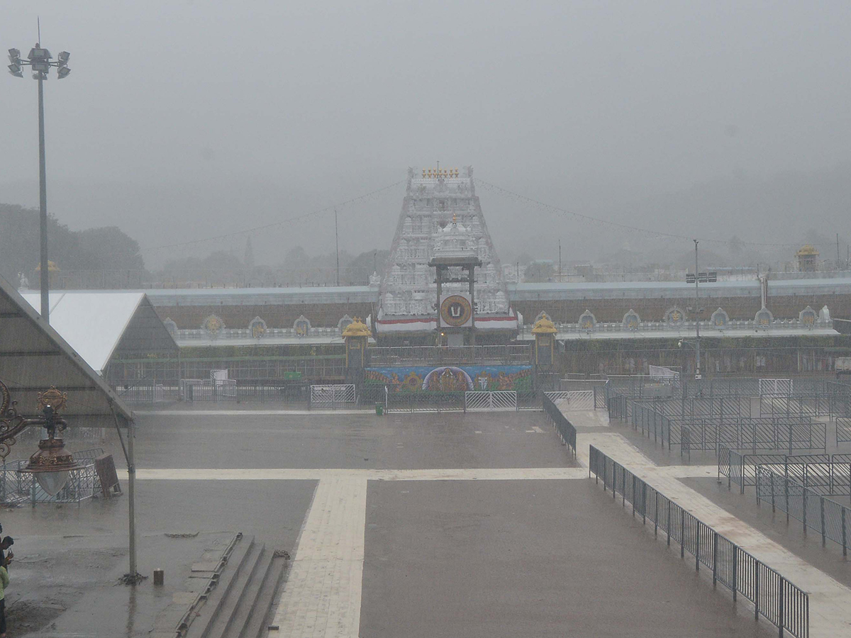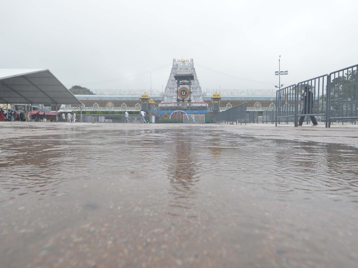 తిరుమలలో రాత్రి నుండి భారీ వర్షం కురుస్తోంది. వర్షాలకు భక్తులు తీవ్ర ఇబ్బందులు పడుతున్నారు. ఎడతెరిపిలేని వర్షాల కారణంగా లోతట్టు ప్రాంతాలన్ని జలమయం అయ్యాయి. ఘాట్ రోడ్డులో కొండచరియలు విరిగిపడుతున్నాయి. భారీ వర్షాల నేపథ్యంలో భక్తులు అప్రమత్తంగా ఉండాలని టీటీడీ హెచ్చరించింది. ఘాట్ రోడ్డులో ప్రయాణించే వాహనదారులకు టీటీడీ సిబ్బంది సూచనలు అందిస్తోంది.
