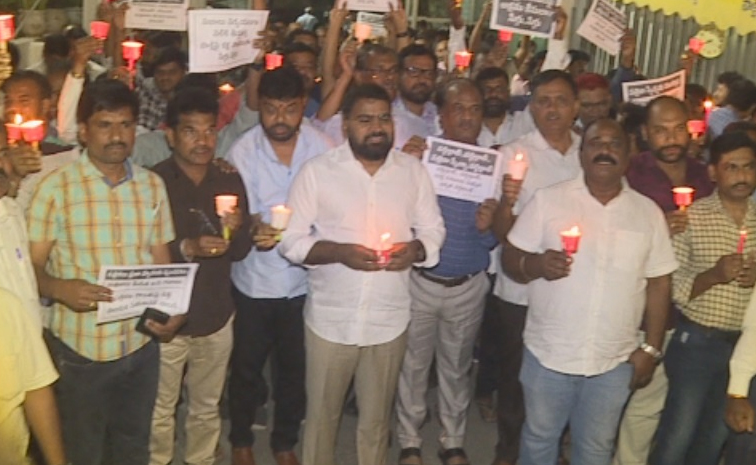 సాక్షి, హైదరాబాద్: హైదరాబాద్లో జర్నలిస్టులు ఆందోళన చేపట్టారు. సాక్షి మీడియాపై కూటమి ప్రభుత్వ దమనకాండకు వ్యతిరేకంగా నిరసన తెలిపారు. కొవ్వొత్తులతో జర్నలిస్టులు నిరసన వ్యక్తం చేశారు. నిరసనలో సాక్షి పత్రిక ఎడిటర్ ఆర్.ధనుంజయరెడ్డి, సాక్షి మీడియా జర్నలిస్టులు, ఇతర మీడియా జర్నలిస్టులు పాల్గొన్నారు.