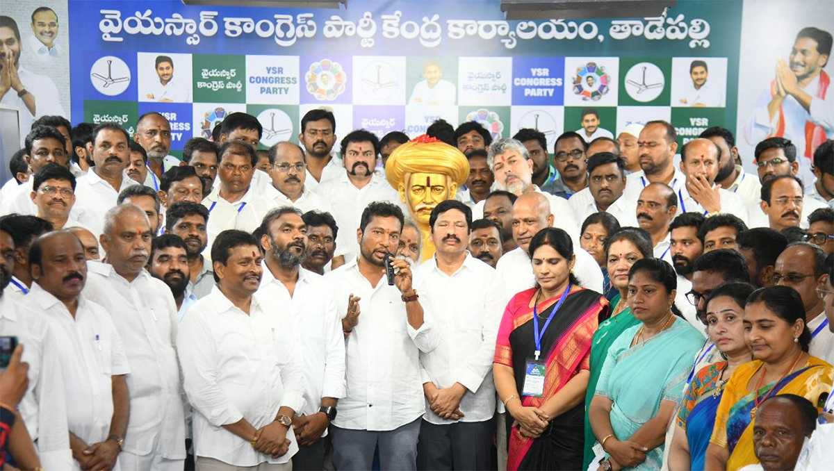 సాక్షి, తాడేపల్లి: వైఎస్సార్సీపీ కేంద్ర కార్యాలయంలో జ్యోతీరావ్ పూలే జయంతి కార్యక్రమం నిర్వహించారు. పూలే విగ్రహానికి పార్టీ నేతలు పూలమాలలు వేసి నివాళులర్పించారు. మాజీ మంత్రులు జోగి రమేష్, వెల్లంపల్లి శ్రీనివాస్, మాజీ ఎమ్మెల్యే మల్లాది విష్ణు, బీవై రామయ్య, నారాయణమూర్తి, ఎమ్మెల్సీలు కల్పలతారెడ్డి, రమేష్ యాదవ్ తదితరులు హాజరయ్యారు.