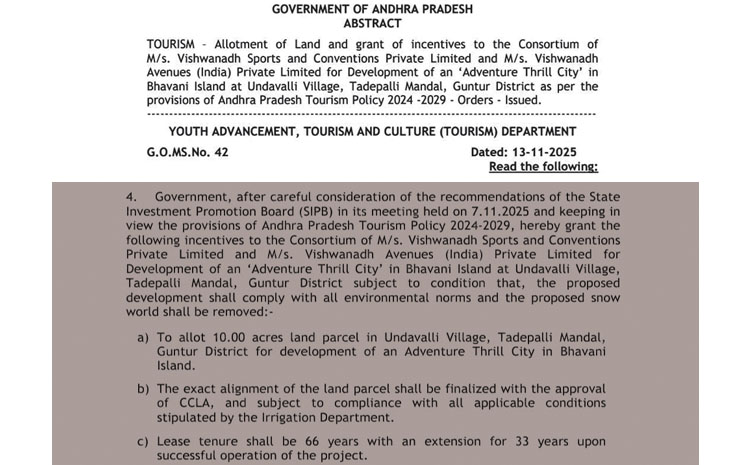 అడ్వెంచర్ థ్రిల్ సిటీ పేరుతో విశ్వనాథ్ స్పోర్ట్స్ అండ్ కన్వెన్షన్.. విశ్వనాథ్ అవెన్యూస్ సంస్థలకు కట్టబెట్టిన వైనం