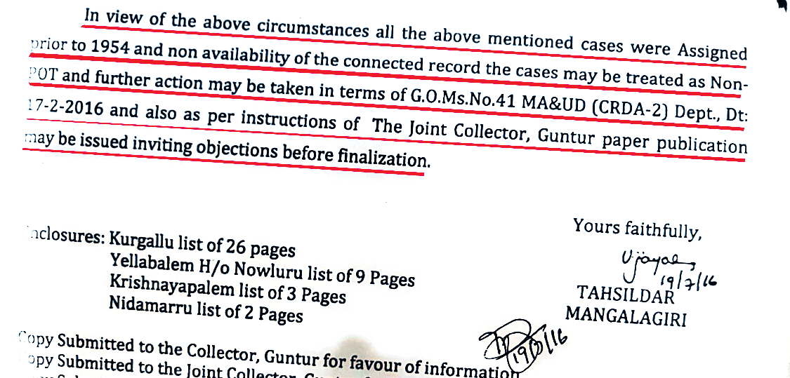 1954 తర్వాత అమరావతి ప్రాంతంలో అసైన్డ్ భూములు పంపిణీ చేయలేదని టీడీపీ ప్రభుత్వంలో అధికారులు న్యాయస్థానానికి సమర్పించిన నివేదిక
