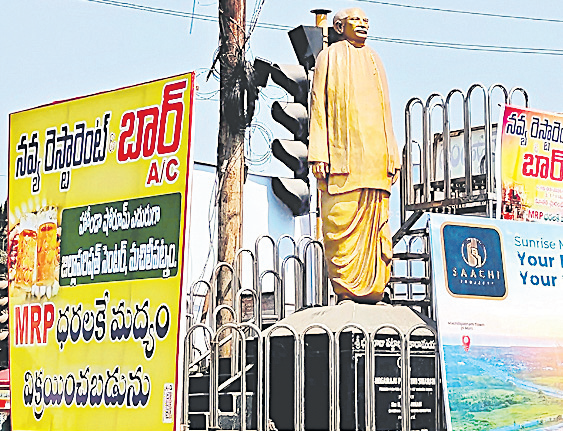 జిల్లా పరిషత్ సెంటర్లో భోగరాజు పట్టాభి సీతారామయ్య విగ్రహం చుట్టూ ఫ్లెక్సీలు