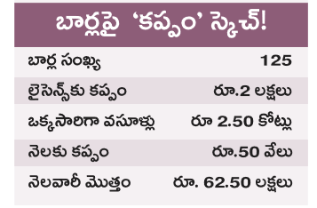 ⇒ సొంత స్థలాలు, భవనాల్లో బార్లను ఏర్పాటు చేయాలని భావిస్తే ఎక్సైజ్ అధికారులను పంపించి తనఖీలతో వేధిస్తామని కూడా బెదిరిస్తున్నారు.