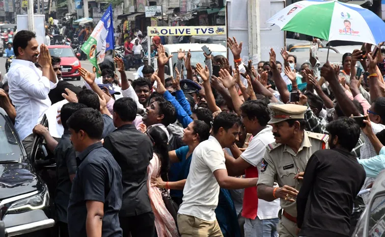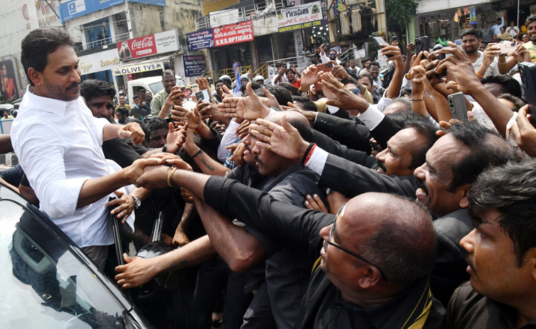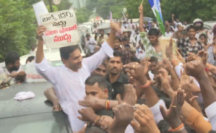 - అభిమానులకు అభివాదం చేస్తూ వైఎస్ జగన్ ముందుకు కదులుతున్నారు.