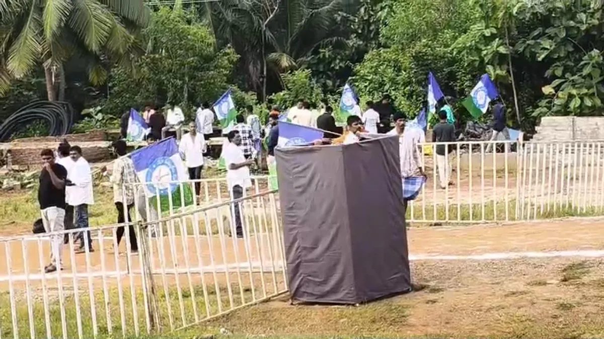 కసింకోట మండలం నర్సింగపల్లి గ్రామంలో జగన్ గారి పర్యటనకి వెళ్ళనీయకుండా బారీకేట్లు పెట్టి గ్రామస్తులను అడ్డుకున్న పోలీసులు...#ChaloNarsipatnam pic.twitter.com/49Nr8kvb3t— YSR Congress Party (@YSRCParty) October 9, 2025
