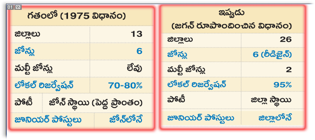 ఈ పరిస్థితిని మార్చడానికి 2022లో వైఎస్ జగన్ జిల్లాలను పునర్వ్యవస్థీకరించారు. రాష్ట్రాన్ని 13 నుంచి 26 జిల్లాలుగా విభజించడం ద్వారా పరిపాలనను ప్రజలకు చేరువ చేశారు. అదే సమయంలో ఉద్యోగాల విషయంలో స్థానికతను బలోపేతం చేయాల్సిన అవసరాన్ని గుర్తించి 2023లో కొత్త లోకల్ క్యాడర్ వ్యవస్థకు రూపకల్పన చేశారు. జూనియర్ అసిస్టెంట్ స్థాయి వరకు పోస్టులను పూర్తిగా జిల్లా యూనిట్గా మార్చారు. తద్వారా ఏ జిల్లాలోని ఉద్యోగాల్లో ఆ జిల్లాకే చెందిన అభ్యర్థులకే ఎక్కువ అవకాశం లభించేలా చేశారు.