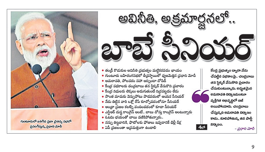 ‘అద్భుతమైన రాజధాని అంటూ చంద్రబాబు అక్రమ సంపాదన ఆర్జనలో బిజీ అయిపోయారు. ఆయన చేస్తోంది రాజధాని నిర్మాణం కాదు.. కూలి పోతున్న టీడీపీ నిర్మాణం. అమరావతి, పోలవరం ప్రాజెక్టు సహా అన్నింటిలోనూ చంద్రబాబు, ఆయన కుమారుడు లోకేశ్ దోపిడీకి పాల్పడుతున్నారు. సొంత హెరిటేజ్ కంపెనీ కోసమే ఆయన తపన అంతా. పోలవరం ప్రాజెక్టును తన అవినీతికి ఏటీఎంగా చేసుకున్నారు. ప్రజల్ని మోసగించేందుకు డేటా చోరీకి పాల్పడ్డారు. చంద్రబాబు తాను సీనియర్నని చెప్పుకుంటారు. కానీ సొంత మామకే వెన్నుపోటు పొడవటంలో ఆయన సీనియర్. తెలుగు ప్రజలను మోసం చేయడంలో సీనియర్. నేడు తిట్టిన పార్టీ ఓళ్లోనే రేపు కూర్చోవడంలో సీనియర్. కేంద్ర పథకాలను తనవిగా స్టిక్కర్ వేసుకోవడంలోనే సీనియర్.’