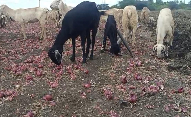 సాక్షి, కర్నూలు: జిల్లాలో ఉల్లి పంట రైతుకు కంటతడి పెట్టిస్తోంది. ఉల్లికి మద్దతు ధర లేకపోవడంతో పంటను రైతులు పొలంలోనే వదిలివేస్తున్నారు. పంట పండించినా ప్రయోజనం లేకపోగా భూమి చదును చేసేందుకు రైతులు అప్పులు చేయాల్సిన పరిస్థితి ఏర్పడింది. ఉల్లి పంటను గొర్రెలకు, మేకలకు రైతులు వదిలేస్తున్నారు. పత్తికొండ మండలం పెద్దహుల్తి ఉల్లి రైతులు తీవ్ర అవస్థలు పడుతున్నారు.