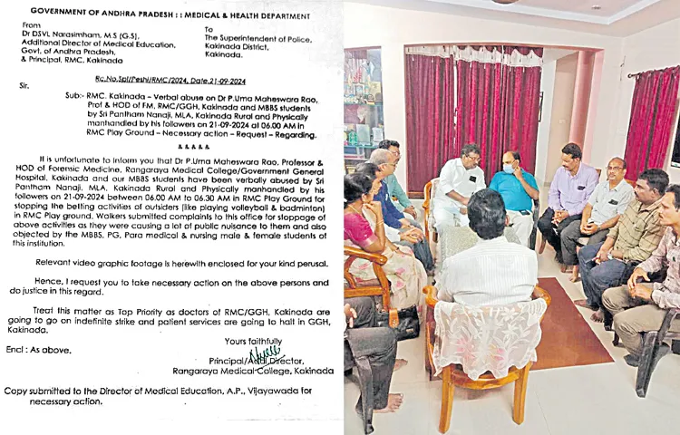 కాకినాడ రంగరాయ వైద్యకళాశాల గ్రౌండ్స్లో వైద్య విద్యార్థులకు కేటాయించిన వాలీబాల్ కోర్టులో అనుమతి లేకుండా ఎమ్మెల్యే అనుచరులు దౌర్జన్యంగా ఆటలాడటంపై అభ్యంతరం చెప్పినందుకు ఆర్ఎంసీ స్పోర్ట్స్ వైస్ చైర్మన్, ఫోరెన్సిక్ హెచ్వోడీ డాక్టర్ ఉమామహేశ్వరరావును శనివారం ఎమ్మెల్యే నానాజీ బండబూతులు తిడుతూ పిడిగుద్దులు కురిపించిన ఘటన రాష్ట్రవ్యాప్తంగా కలకలం రేపిన విషయం విదితమే.