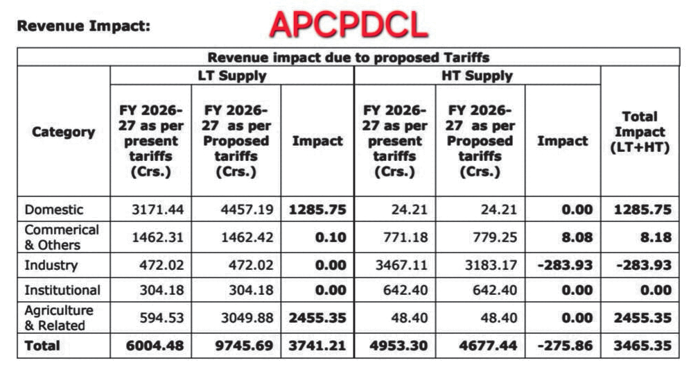ఏపీఎస్పీడీసీఎల్ లో రూ.7,733.85 కోట్ల వడ్డన.. ఏపీసీపీడీసీఎల్ పరిధిలో రూ.3,465.35 కోట్ల పెంపు
