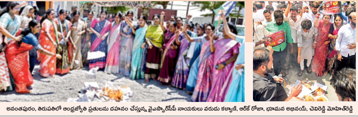 రాధాకృష్ణా ఖబడ్దార్.. ఒళ్లు దగ్గర పెట్టుకుని రాతలు రాయాలని హెచ్చరించారు. రాధాకృష్ణది జర్నలిజం కాదని, ముమ్మాటికీ బ్రోకరిజం అని నినాదాలు చేశారు. ఏబీఎన్ ఆంధ్రజ్యోతి ప్రతులను పలుచోట్ల మంటల్లో వేసి తగలబెట్టారు. ఏబీఎన్ రాధాకృష్ణ చిత్రాలతో ఉన్న ప్లకార్డులకు నిప్పుపెట్టారు. రాధాకృష్ణపై కేసు నమోదు చేయాలని పలు పోలీస్స్టేషన్లలో ఫిర్యాదు చేశారు. రాష్ట్రంలో ఏ మహిళను దూషించినా చర్యలు తీసుకుంటామని పలుమార్లు డైలాగులు కొట్టిన నారా లోకేశ్, హోం మంత్రి అనిత ఏబీఎన్పై, రాధాకృష్ణపై ఎందుకు ఒక్క మాట కూడా మాట్లాడలేదని ప్రశ్నించారు.