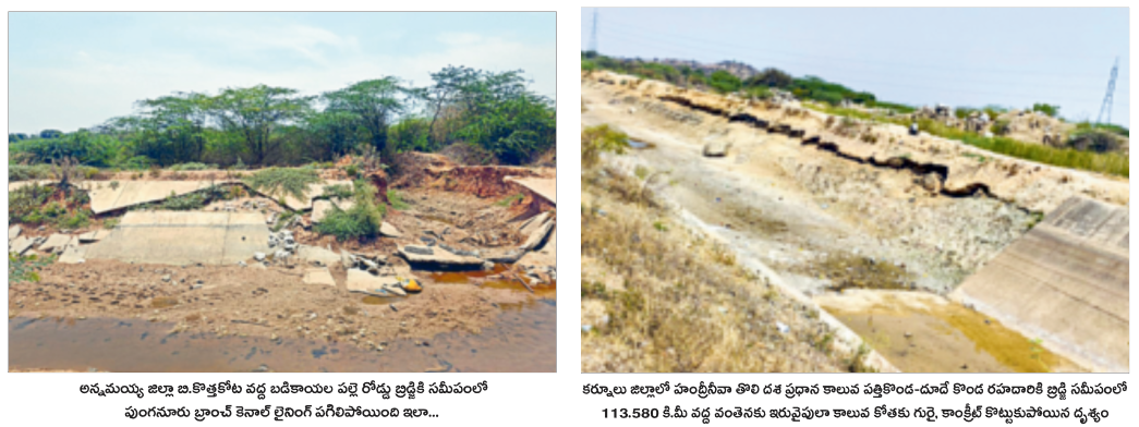 నీటి ప్రవాహం ఆగడంతో హంద్రీ–నీవా, పుంగనూరు, కుప్పం బ్రాంచ్ కెనాల్ లైనింగ్ డొల్లతనం బహిర్గతం