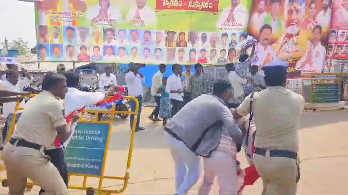సీఎం గోబ్యాక్ అంటూ విద్యార్థి సంఘాల నేతలు నినాదాలు చేశారు. జాబ్ క్యాలండర్ విడుదల చేయాలని డిమాండ్ చేశారు. దీంతో పోలీసులు విద్యార్థి సంఘం నేతలను ఈడ్చిపడేశారు. అనంతరం, విద్యార్థి సంఘం నేతలను పోలీసులు అరెస్టు చేశారు.