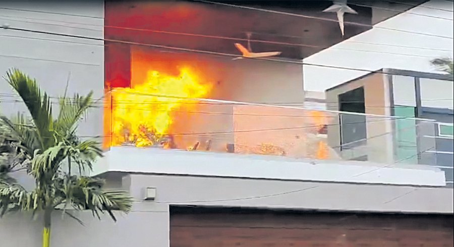 పెట్రోల్ బాంబులతో దాడి చేయడంతో తగలబడుతున్న జోగి రమేష్ ఇల్లు