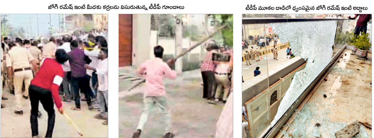 టీడీపీ గూండాలు జోగి రమేష్ ఇంటిపై దాడికి వస్తున్నట్లు ముందస్తు సమాచారం ఉన్నప్పటికీ, పోలీసులు నిర్లక్ష్యంగా వ్యవహరించారు. నామ మాత్రంగా బందోబస్తు ఏర్పాటు చేశారు. పోలీసుల కనుసన్నల్లోనే టీడీపీ, బ్లేడ్, గంజాయి బ్యాచ్, రౌడీషీటర్లు రెచ్చిపోయి దాడులు చేస్తున్నా చేష్టలుడిగి చూస్తు్తండిపోయారు. కనీసం వారిని నిలువరించ లేక, ప్రేక్షక పాత్రకే పరిమితం అయ్యారు. మధ్యాహ్నం నుంచే జోగి రమేష్ ఇంటి వైపు వెళ్తున్న వైఎస్సార్సీపీ శ్రేణులను నిలువరించిన పోలీసులు, టీడీపీ గూండాలకు మాత్రం పచ్చ జెండా ఊపారు. పోలీసుల తీరుపై వైఎస్సార్సీపీ నేతలు, ప్రజా సంఘాల నేతలు తీవ్రంగా మండిపడ్డారు.