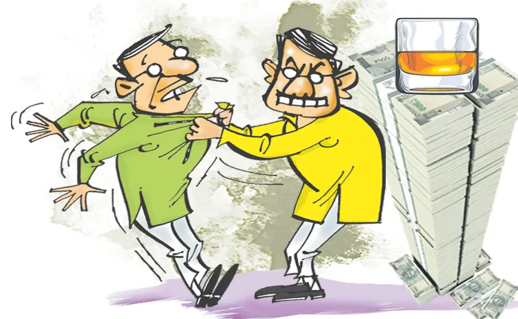 భారీ దోపిడీకి ప్రభుత్వ ముఖ్య నేతతో పక్కాగా డీల్ కుదరడం వల్లే టీడీపీ మద్యం సిండికేట్ బరితెగిస్తోంది. ప్రైవేటు మద్యం దుకాణాల్లో ఎంఆర్పీ కంటే అధిక ధరతో విక్రయించేందుకు ముఖ్య నేత ఇప్పటికే పచ్చ జెండా ఊపారు. ఒక్కో బాటిల్పై మద్యం దుకాణంలో రూ.15 అధికంగా.. బెల్ట్ షాపుల్లో అయితే రూ.25 అధికంగా విక్రయించేందుకు అనుమతించారు.