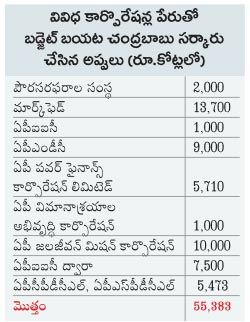 కార్పొరేషన్ల ద్వారా బడ్జెట్ బయట అప్పులు రూ.55,383 కోట్లకు చేరిక