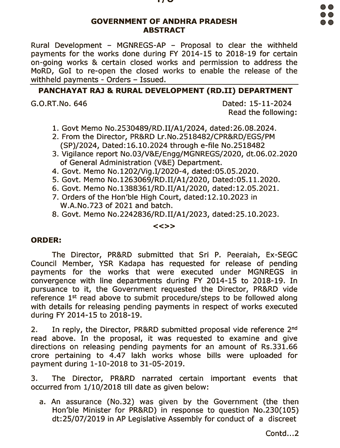 ఈ మేరకు అదే నెల 15న ఆదేశాలు జారీ చేసింది. వాటికి సంబంధించి 2025 ఆగస్టులో దాదాపు రూ.300 కోట్ల దాకా చెల్లింపులు పూర్తయ్యాయి. అప్పట్లో వివిధ గ్రామ పంచాయతీల పేరుతో జరిగిన పనులకు సంబంధించి నియోజకవర్గ, మండల, గ్రామ స్థాయి టీడీపీ నాయకులు పలువురు పెద్ద సంఖ్యలో నేరుగా ‘వెండార్’ పేరిట బిల్లులు పెట్టుకొని డబ్బులు దండుకున్నారు. కొన్ని చోట్ల ఎంపీడీవోలు లేదా పంచాయతీరాజ్ ఇంజనీరింగ్ అధికారుల పేరిట ఆన్లైన్లో నమోదు చేసి టీడీపీ నేతలు సొమ్ము చేసుకున్నారు. ఇలా వందల కోట్ల రూపాయలు డ్రా చేసుకున్నారు.