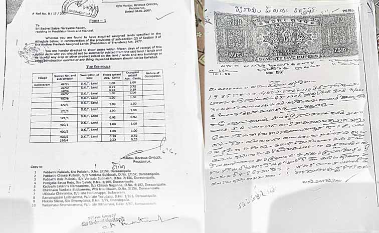 2007 జనవరి 6న ఎస్సీ రైతులకు ఫాం–1 నోటీసు ఇచ్చిన తహసీల్దార్ , 1985 జనవరి 10న భూములను నడిపి సుబ్బన్నకు అమ్మిన ఎస్సీ రైతులు రిజిస్ట్రేషన్ పత్రం