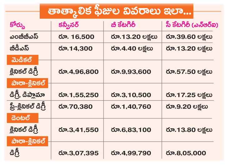 ఎంబీబీఎస్ మెడికల్ పీజీ తాత్కాలిక ఫీజుల ఖరారు