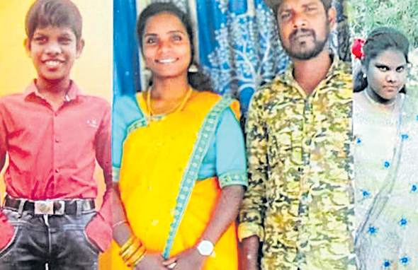 వాహనంలో వచ్చిన మృతదేహాలను చూసి రోదిస్తున్న కుటుంబ సభ్యులు