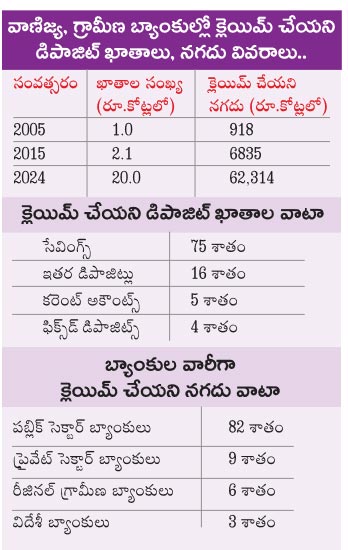 వాణిజ్య, గ్రామీణ బ్యాంకుల్లో భారీగా వారసుల్లేని సొమ్ము