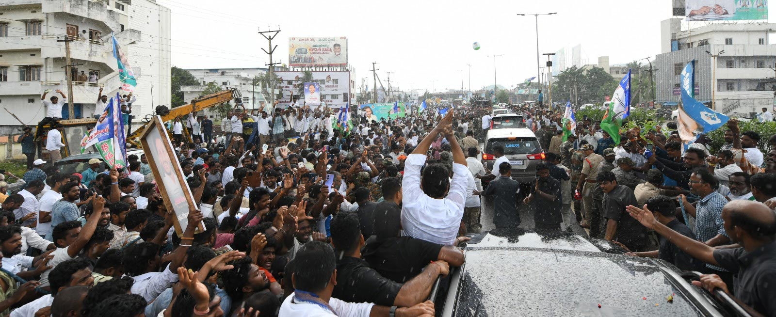 జగన్ పర్యటనను ఎలాగైనా అడ్డుకోవాలని ఆంక్షల పేరిట ఆటంకాలు సృష్టించింది కూటమి ప్రభుత్వం. ఖాకీలను ప్రయోగించి జనాన్ని రాకుండా ప్రయత్నించింది. అయితే చెక్పోస్టులు, బారికేడ్లను జగన్ మీద ఉన్న అభిమానం బద్దలు కొట్టేసింది. జనాలు తండోపతండాలుగా తరలి రావడం చూసి పోలీసులే కంగుతిన్నారు. ఎయిర్పోర్ట్ నుంచి మాకవరపాలెం వరకు.. దారి పొడవునా జగన్ ఆగిన చోటల్లా ఇసకేస్తే రాలని జనమే కనిపించారు. ఆంక్షల వలయాన్ని చేధించుకుని.. గుట్టలు, పొలాల గుండా కొందరు యువకులు బైకులపై తరలి రావడం గమనార్హం.