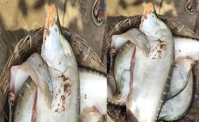 సాక్షి, ఆకివీడు(పశ్చిమ గోదావరి) : శీతల్ చేపలు మార్కెట్లో తళుక్కు మంటున్నాయి. సముద్ర జాతికి చెందిన ఈ చేపల్ని చెరువుల్లో పదుల సంఖ్యలో వేసి పెంచుతున్నారు. ఇది పూర్తి మాంసాహారి చేప. శీతల్ చేప చెరువుల్లోని గురకల్ని, ఇతర చిన్న చేపల్ని తినేస్తుంది. దీంతో ఇది భారీ సైజులో పెరుగుతుంది. 3 కిలోల నుండి 8 కిలోల పైబడి బరువు తూగుతుంది. కిలో చేప ధర రూ.350 వరకూ స్థానిక మార్కెట్లో పలుకుతోంది. కేరళ, అసోం, మహారాష్ట్ర తదితర ప్రాంతాల్లో ఈ చేపకు డిమాండ్ అధికంగా ఉందని వ్యాపారులు చెబుతున్నారు. ఆదివారం స్థానిక హోల్సేల్ మార్కెట్కు 5 కిలోల శీతల్ చేపలు అమ్మకానికి తీసుకువచ్చారు.