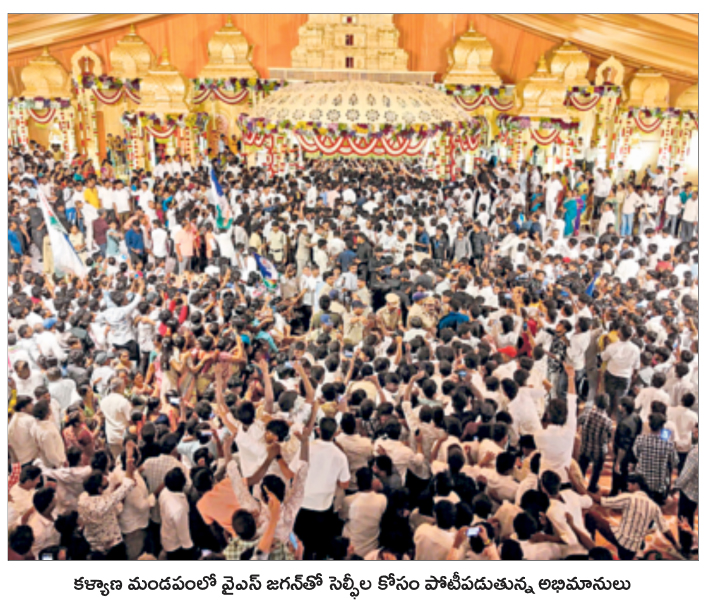 హెలిప్యాడ్ నుంచి వైఎస్ జగన్ కారులో ప్రయాణిస్తున్న మార్గంలో అశేష జనసందోహంతో జాతీయ రహదారి కిక్కిరిసిపోయింది. ఆయన కాన్వాయ్ వెంట అభిమానులు ఉప్పొంగిన ఉత్సాహంతో అడుగులు వేశారు. వివాహ వేదిక వద్దకు చేరుకోగానే ఈలలు, జై జగన్ నినాదాలు చేస్తూ తమ అభిమానం చాటుకున్నారు. వైఎస్ జగన్ అందరికీ అభివాదం చేస్తూ.. చిరునవ్వుతో ఆప్యాయంగా పలకరిస్తూ వేదిక వద్దకు చేరుకున్నారు. నూతన వధూవరులు డాక్టర్ మోక్షితా విష్ణుప్రియారెడ్డి, డాక్టర్ తేజేష్రెడ్డికి వైఎస్ జగన్ వివాహ శుభాకాంక్షలు తెలియజేసి.. ఆశీస్సులు అందజేశారు. తోపుదుర్తి ప్రకాష్రెడ్డి, రాజశేఖర్రెడ్డి, చంద్రశేఖర్రెడ్డి, వారి కుటుంబ సభ్యులు, బంధువులతో వైఎస్ జగన్ ముచ్చటించారు. అనంతరం అక్కడి నుంచి తిరుగుపయనమయ్యారు.
