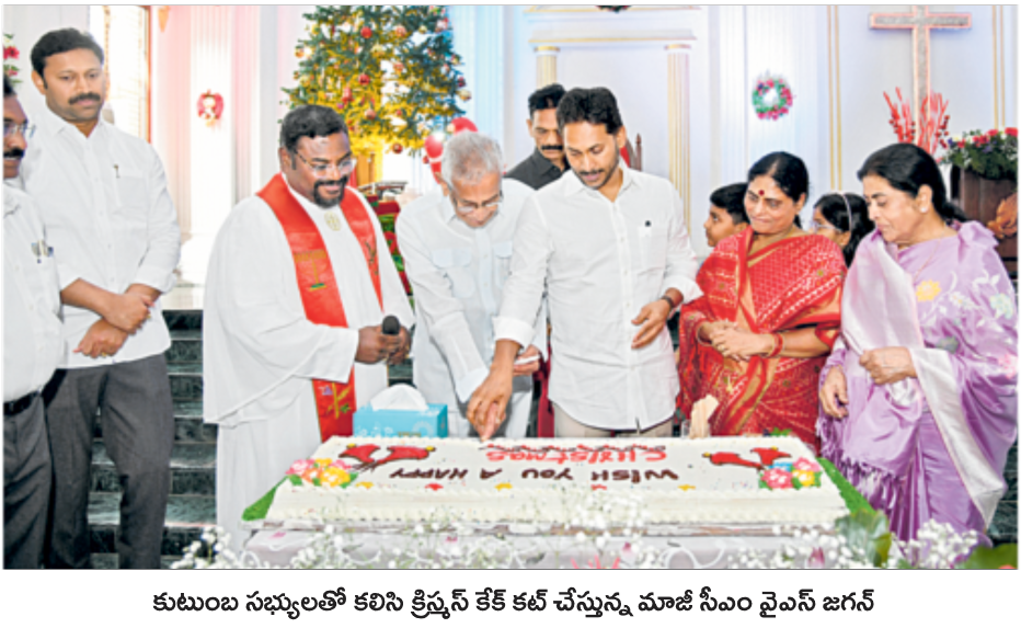 అనంతరం వైఎస్ జగన్ తన మాతృమూర్తి వైఎస్ విజయమ్మ, కుటుంబ సభ్యులు, ఎంపీ వైఎస్ అవినాష్ రెడ్డి, పారిశ్రామికవేత్త వైఎస్ ప్రకాష్ రెడ్డి, దివంగత వైఎస్ జార్జిరెడ్డి సతీమణి వైఎస్ భారతమ్మ, చర్చి ఫాదర్లు రెవరెండ్ డాక్టర్ థామస్ ప్రసాదరావుబాబు, నరేష్ బాబు, మృత్యుంజయరావులతో కలిసి క్రిస్మస్ కేక్ కట్ చేశారు. 2026 నూతన సంవత్సర చర్చి క్యాలెండర్ను ఆవిష్కరించారు. వైఎస్ జగన్ సతీమణి వైఎస్ భారతిరెడ్డి ప్రత్యేక ప్రార్థనలు చేసి క్రిస్మస్ శుభాకాంక్షలు తెలిపారు.
