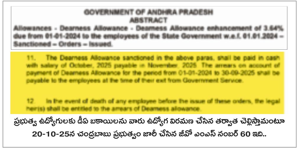 ఉద్యోగుల సమస్యలు ఎలా ఉన్నాయో ఒక్కసారి చూస్తే... ఈ డిసెంబర్ పూర్తయి జనవరి వస్తే ఐదు డీఏలు ఇవ్వాల్సి ఉండగా కేవలం ఒక్కటి మాత్రమే ఇచ్చారు. అది కూడా వాయిదాల్లో ఇస్తామంటున్నారు. ఆశ్చర్యం ఏమిటంటే.. డీఏ అరియర్స్ను రిటైర్ అయిన తర్వాత ఇస్తామని చెప్పిన ప్రభుత్వాన్ని బహుశా చరిత్రలో ఎప్పుడూ చూసి ఉండం... ఒక్క చంద్రబాబు ప్రభుత్వంలో మినహా! దానికి తగ్గట్టుగా జీవో 60 జారీ చేశారు. చరిత్రలో ఏ ముఖ్యమంత్రి ఇంత దౌర్బాగ్యమైన జీవోను తీసుకొని వచ్చి ఉండరు (జీవో నంబర్ 60ని ప్రదర్శించారు). దీనిపై ఉద్యోగుల్లో తీవ్ర వ్యతిరేకత రావడంతో దాన్ని ఉపసంహరించుకుని, వాయిదాల్లో ఇస్తామన్నారు.