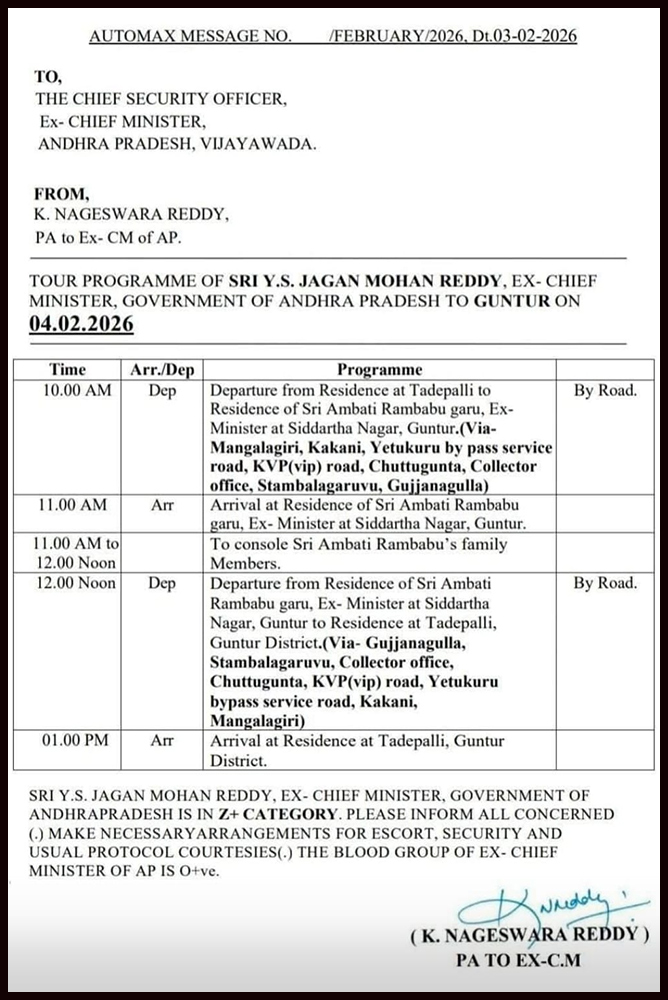 సాక్షి, తాడేపల్లి: వైఎస్సార్సీపీ అధినేత, మాజీ ముఖ్యమంత్రి వైఎస్ జగన్మోహన్రెడ్డి రేపు(ఫిబ్రవరి 4, బుధవారం) గుంటూరులో పర్యటించనున్నారు. అంబటి రాంబాబు కుటుంబాన్ని వైఎస్ జగన్ పరామర్శించనున్నారు. టీడీపీ గూండాల దాడిలో ధ్వంసమైన ఇల్లు, ఆఫీసుని వైఎస్ జగన్ పరిశీలించనున్నారు.