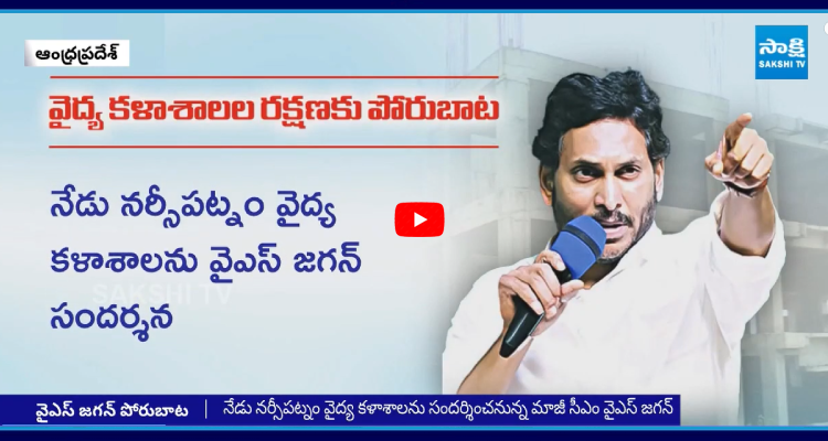సాక్షి, అమరావతి: ప్రజారోగ్యం, రాష్ట్ర పిల్లల భవితవ్యానికి గొడ్డలి పెట్టులా మారిన ప్రభుత్వ వైద్య కళాశాలల ప్రైవేటీకరణపై వైఎస్సార్సీపీ అధినేత, మాజీ సీఎం వైఎస్ జగన్మోహన్రెడ్డి పోరుకు సిద్ధం అయ్యారు. గత ప్రభుత్వంలో నిర్మాణం ప్రారంభమైన నర్సీపట్నం వైద్య కళాశాలను నేడు ఆయన స్వయంగా సందర్శించనున్నారు. తద్వారా ప్రభుత్వ వైద్య కళాశాలలను పరిరక్షించేలా.. ప్రైవేటీకరణకు వ్యతిరేకంగా ప్రజా ఉద్యమానికి అంకురార్పణ చేయనున్నారు.