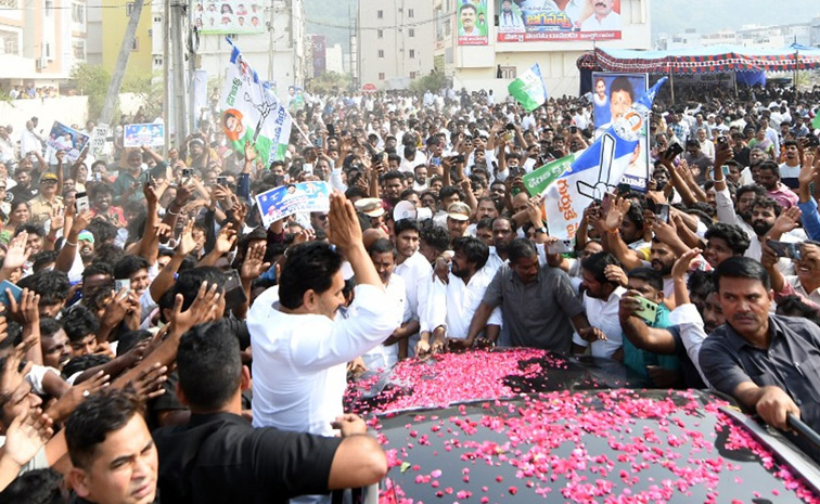 జగన్ రాకతో ఆ ప్రాంతమంతా కోలాహలం నెలకొంది. ఆయన్ని చూసేందుకు.. ఫొటోలు తీసేందుకు.. సెల్ఫీలు దిగేందుకు.. కరచలనం చేసేందుకు.. భారీగా జనం తరలివచ్చారు.