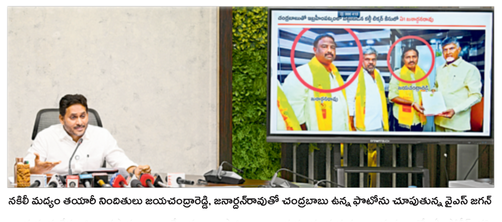 » రాష్ట్రంలో వ్యవస్థీకృత పద్ధతిలో నకిలీ (ఇల్లిసిట్, స్పూరియస్) మద్యం విక్రయాలు జరుగుతున్నాయి. ఇలాంటి మాఫియాను ప్రపంచ చరిత్రలో ఎక్కడా చూసి ఉండం. ఎక్కడ చూసినా చిన్నపాటి నకిలీ మద్యం ఫ్యాక్టరీలే కనిపిస్తున్నాయి. రాష్ట్ర వ్యాప్తంగా నకిలీ మద్యం తయారు చేసి.. వాళ్ల మాఫియా లిక్కర్ షాపుల ద్వారా విక్రయాలు సాగిస్తున్నారు.