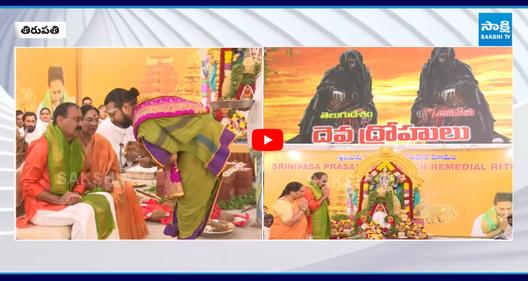 సాక్షి, తిరుపతి: తిరుమల లడ్డూ వ్యవహారంలో సిట్ ఇచ్చిన నివేదికలో ప్రసాదంలో జంతువుల కొవ్వు కలవలేదని పేర్కొంది. ఈ నేపథ్యంలో కూటమి ప్రభుత్వం చేసిన అపచారానికి పరిహారంగా వైఎస్సార్ కాంగ్రెస్ పార్టీ హోమం తలపెట్టింది. ఈ హోమం కార్యక్రమంలో టీటీడీ మాజీ చైర్మన్ భూమన కరుణాకర్ రెడ్డి దంపతులు పాల్గొన్నారు. భూమన నివాసం వద్దే హోమం కార్యక్రమం జరుగుతోంది.