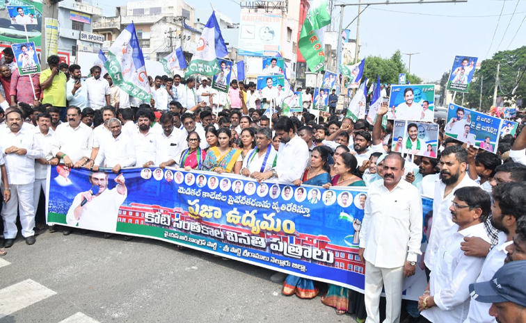 చంద్రబాబు ప్రభుత్వం ఆ క్రెడిట్ను నాశనం చేయాలని బలంగా నిర్ణయించింది. స్వతహాగానే పెత్తందారుల సీఎం అయిన చంద్రబాబు.. పీపీపీ పేరిట లక్షల కోట్ల విలువైన ఆ ప్రభుత్వ ఆస్తిని ప్రైవేట్పరం చేసే ప్రయత్నాలు మొదలుపెట్టారు. ఈ క్రమంలోనే ఉద్దేశపూర్వకంగానే నిర్మాణంలో ఉన్న మెడికల్ కాలేజీలను నిర్లక్ష్యం చేస్తూ వచ్చారు. దీంతో ప్రజల నుంచి వ్యతిరేకత మొదలైంది. ఆ వ్యతిరేకతను చూపించైనా ప్రైవేటీకరణ నిర్ణయాన్ని అడ్డుకోవాలని వైఎస్ జగన్ భావించారు. ఒక పోరాటం చేయాలని వైఎస్సార్సీపీ శ్రేణులకు పిలుపు ఇచ్చారు.