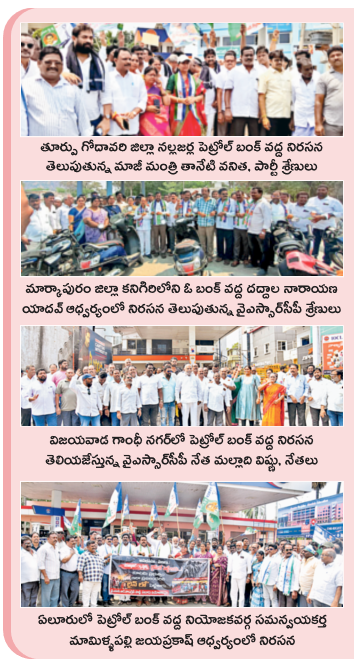 మంగళవారం వైఎస్సార్సీపీ నిర్వహించిన ఆందోళన కార్యక్రమంలో వైఎస్సార్సీపీ నేతలతో పాటు ప్రజలు భాగస్వాములు కావటం విశేషం. దీంతో నిరసన కార్యక్రమం దిగి్వజయమైంది. ఈ సందర్భంగా సీఎం చంద్రబాబు సర్కార్ వైఫల్యాన్ని నేతలు ఎండగట్టారు. ‘ఏపీలో మద్యం పుల్ .. డీజిల్ పెట్రోల్ నిల్, పెట్రోల్, డీజిల్ వెంటనే సరఫరా చేయాలి, దేశంలో ఇతర రాష్ట్రాల్లో ఎక్కడా సంక్షోభం లేదు.. ఇక్కడే ఎందుకు? ఇది పూర్తిగా ప్రభుత్వ అసమర్థత ప్రభుత్వం, ఇంధనం అవసరమైనంత అందుబాటులో ఉండేలా ప్రభుత్వం తక్షణ చర్యలు తీసుకోవాలి’ అంటూ రాసిన ప్లకార్డులు వైఎస్సార్సీపీ నాయకులు చేతపట్టుకొని బంకుల వద్ద నిరసన తెలిపారు.