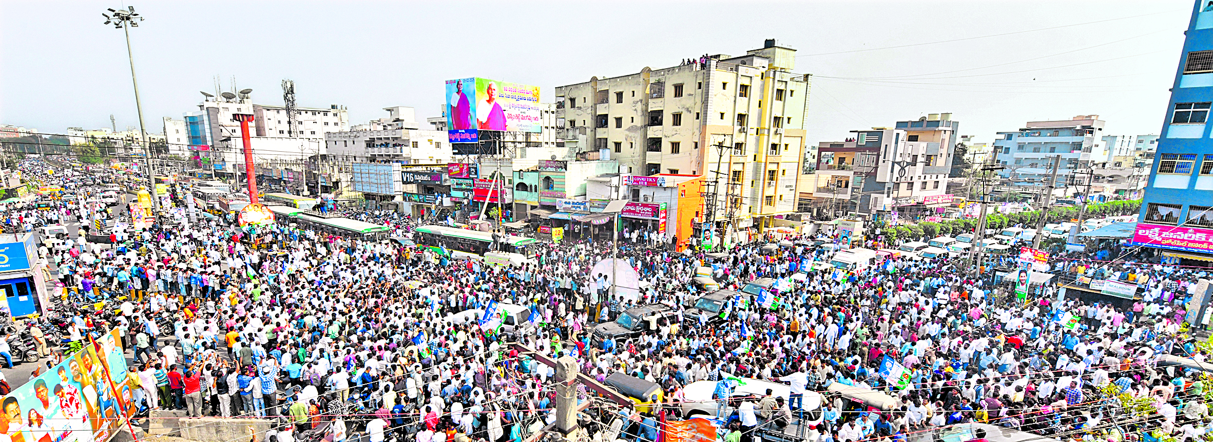 » గుంటూరు నగరంలోకి ప్రవేశించిన వైఎస్ జగన్ కాన్వాయ్కు అడుగడుగునా ప్రజలు బ్రహ్మరథం పట్టడంతో చుట్టుగుంట సెంటర్ నుంచి అంబటి రాంబాబు నివాసానికి వచ్చేందుకు ఏకంగా 3 గంటలకుపైగా సమయం పట్టింది. అంబటి రాంబాబు నివాసంతో పాటు చుట్టుపక్కల ఇళ్లపైన, గోడలపైకి ఎక్కి ప్రజలు తమ అభిమాన నేతను చూశారు. పర్యటన ఈ స్థాయిలో విజయవంతం కావడంతో అధికార పార్టీ నేతల్లో గుబులుపుట్టింది.