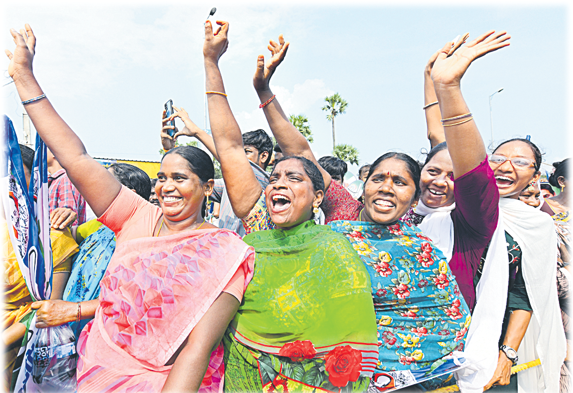 గూడూరులో వైఎస్ జగన్తో కరచాలనానికి పోటీ పడుతున్న అక్కచెల్లెమ్మలు