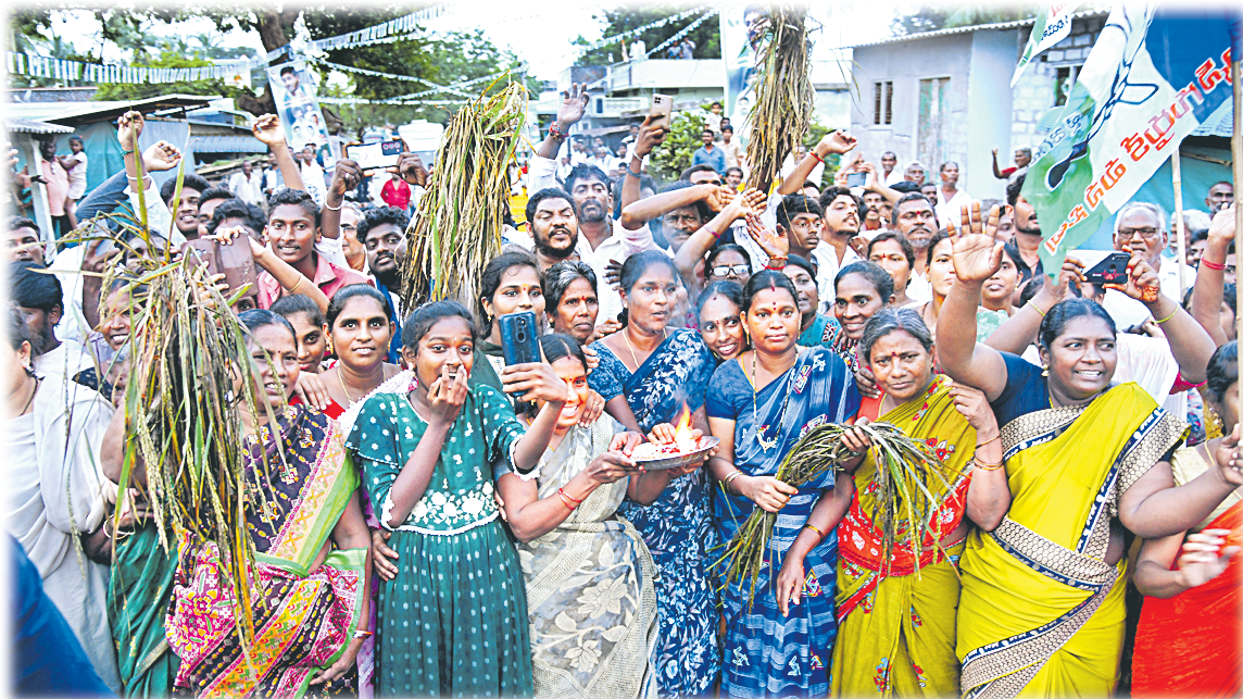 సాక్షి, అమరావతి: మోంథా తుపాను ధాటికి విలవిల్లాడిన రైతులను పరామర్శించేందుకు మంగళవారం మాజీ సీఎం వైఎస్ జగన్మోహన్రెడ్డి చేపట్టిన కృష్ణా జిల్లా పర్యటన దిగ్విజయంగా సాగింది. తమ కన్నీళ్లు తుడిచేందుకు వచ్చిన జననేతకు అడుగడుగునా ప్రజలు బ్రహ్మరథం పట్టారు. దారి పొడవునా ఆయనకు ఘన స్వాగతం పలికారు. పల్లెల్లో మహిళలు రోడ్లకిరువైపులా నిలబడి పూలవర్షం కురిపించారు. అడుగడుగునా ఆంక్షలు పెట్టినా, రోడ్లు, కూడళ్లు, సరిహద్దుల్లో బారికేడ్లు పెట్టి.. తాళ్లతో దారులు మూసేసినా ప్రజలు వెనుకడుగు వేయలేదు.