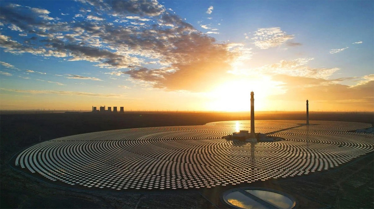 China’s solar plant in Dunhuang uses 12,000 mirrors to focus sunlight onto a central tower, heating molten salt to extreme temperatures.