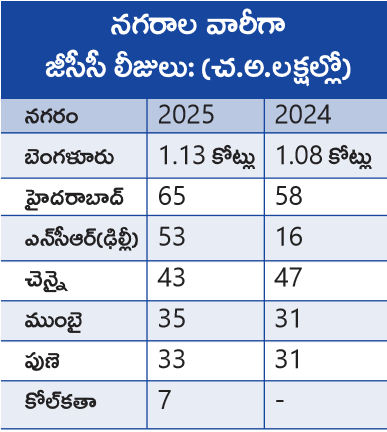 గత ఏడాది హైదరాబాద్లో 1.28 కోట్ల చదరపు అడుగుల ఆఫీసు స్పేస్ లావాదేవీలు జరిగాయి. ఇందులో 51 శాతం వాటా గ్లోబల్ కేపబులిటీ సెంటర్ (జీసీసీ) విభాగానిదే.. 2025లో నగరంలో జీసీసీలు 65 లక్షల చ.అ. ఆఫీసు స్పేస్ను లీజుకు తీసుకున్నాయి. 2024లో 58 లక్షల చ.అ.లావాదేవీలతో పోలిస్తే ఇది అధికం. దేశంలోని ఏడు ప్రధాన నగరాల్లోని జీసీసీ లావాదేవీల్లో భాగ్యనగరం వాటా ఏకంగా 19 శాతంగా ఉందని వెస్టియాన్ రిపోర్ట్ వెల్లడించింది.