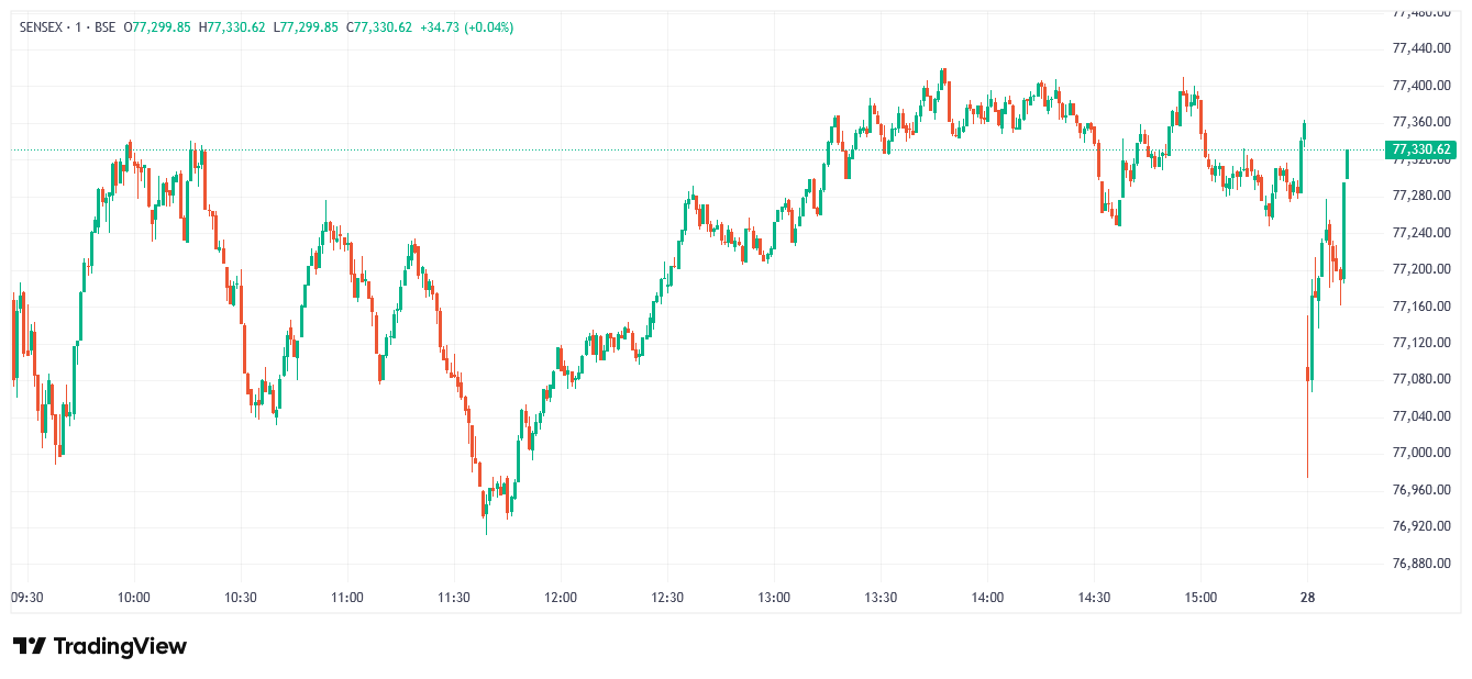 దేశీయ స్టాక్ మార్కెట్ సూచీలు మంగళవారం నష్టాల్లో ప్రారంభమయ్యాయి. ఎన్ఎస్ఈ నిఫ్టీ 50 సూచీ 42.80 పాయింట్లు లేదా 0.18 శాతం నష్టంతో 24,049.90 వద్ద ప్రారంభమైంది. బీఎస్ఈ సెన్సెక్స్ మంగళవారం ట్రేడింగ్ సెషన్ ను 208.84 పాయింట్లు లేదా 0.27 శాతం తగ్గి 77,094.79 వద్ద ప్రారంభించింది.
