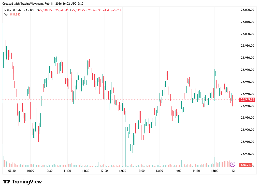 ముగింపులో బీఎస్ఈ సెన్సెక్స్ 40.28 పాయింట్లు లేదా 0.05 శాతం నష్టపోయి 84,233.64 వద్ద ఉండగా, ఎన్ఎస్ఈ నిఫ్టీ 18.7 పాయింట్లు లేదా 0.07 శాతం పెరిగి 25,953.85 వద్ద ఉంది. విస్తృత మార్కెట్లో ఎన్ఎస్ఈ మిడ్ క్యాప్ 100, స్మాల్ క్యాప్ సూచీలు వరుసగా 0.03 శాతం, 0.02 శాతం లాభపడ్డాయి.